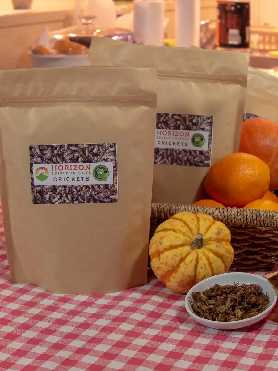 Horizon Insects Every day crickets are high-quality insects sold in simpler, non retail packaging, hence lower price. Cheap edible crickets (Acheta domesticus) are becoming one of the UK’s most popular sustainable protein snacks. Moreover, they are packed with complete protein, iron, and vitamin B12, these nutritious insects are a healthy, eco-friendly alternative to traditional meat.